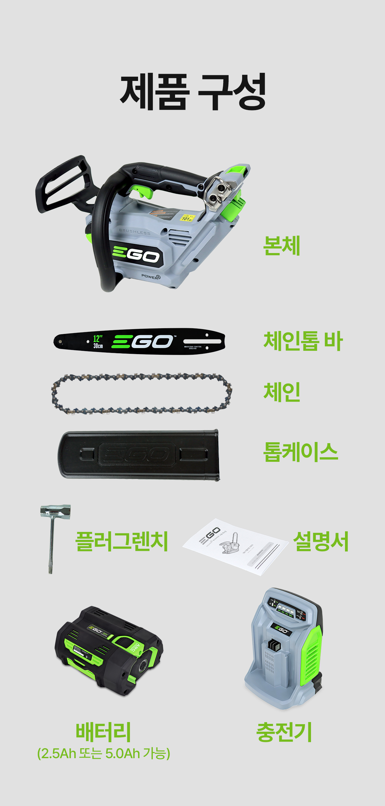 충전 체인톱 CS1200E (배터리 + 급속충전기 포함)
